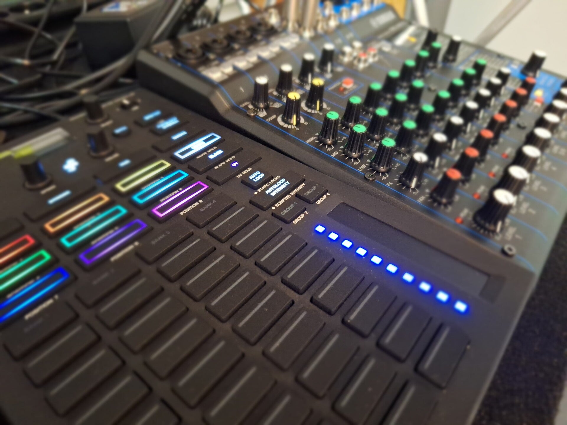 Een combinatie van spots, moving heads en tube-lighting zorgen voor een sfeervolle dansvloer. Om fotograaf-vriendelijk te blijven maak ik bijvoorbeeld geen gebruik van lasers.